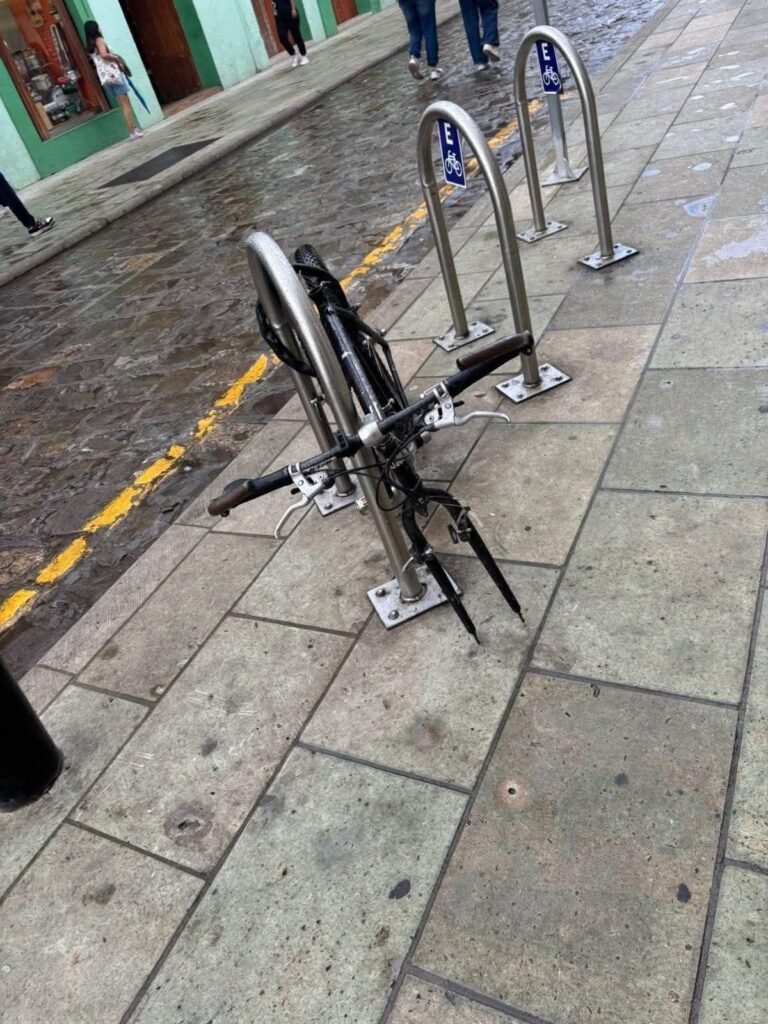 👉 Así dejaron una bicicleta en pleno Centro Histórico de Oaxaca, prueba clara de la ola de robos que aqueja a la ciudadanía.