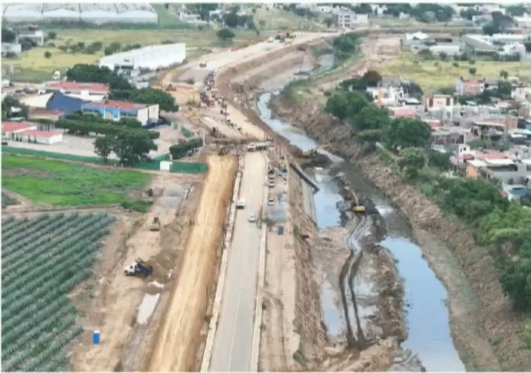 Aunque las recientes lluvias han retrasado el encauzamiento del río, se espera concluir esa fase en las próximas semanas para mejorar el flujo vehicular, reducir los congestionamientos y ofrecer mayor seguridad a las y los automovilistas.